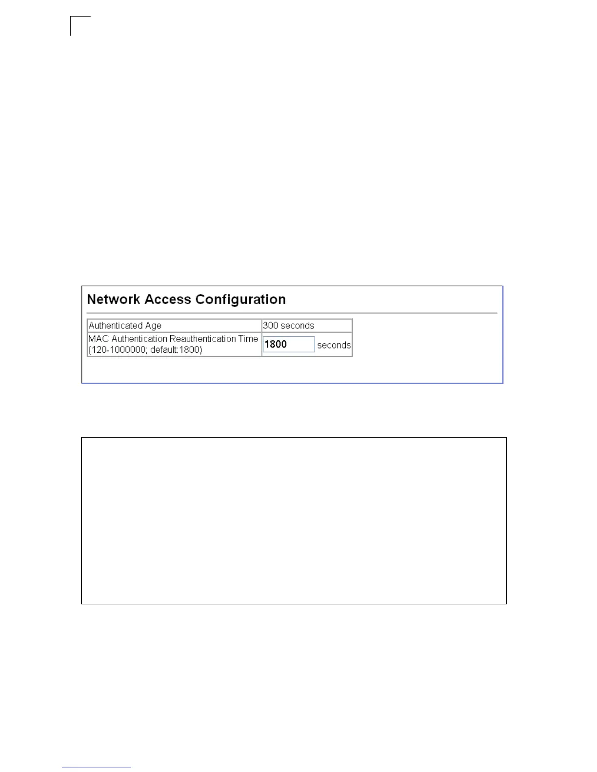 • MAC Authentication Reauthentication Time – Sets the time period after which
