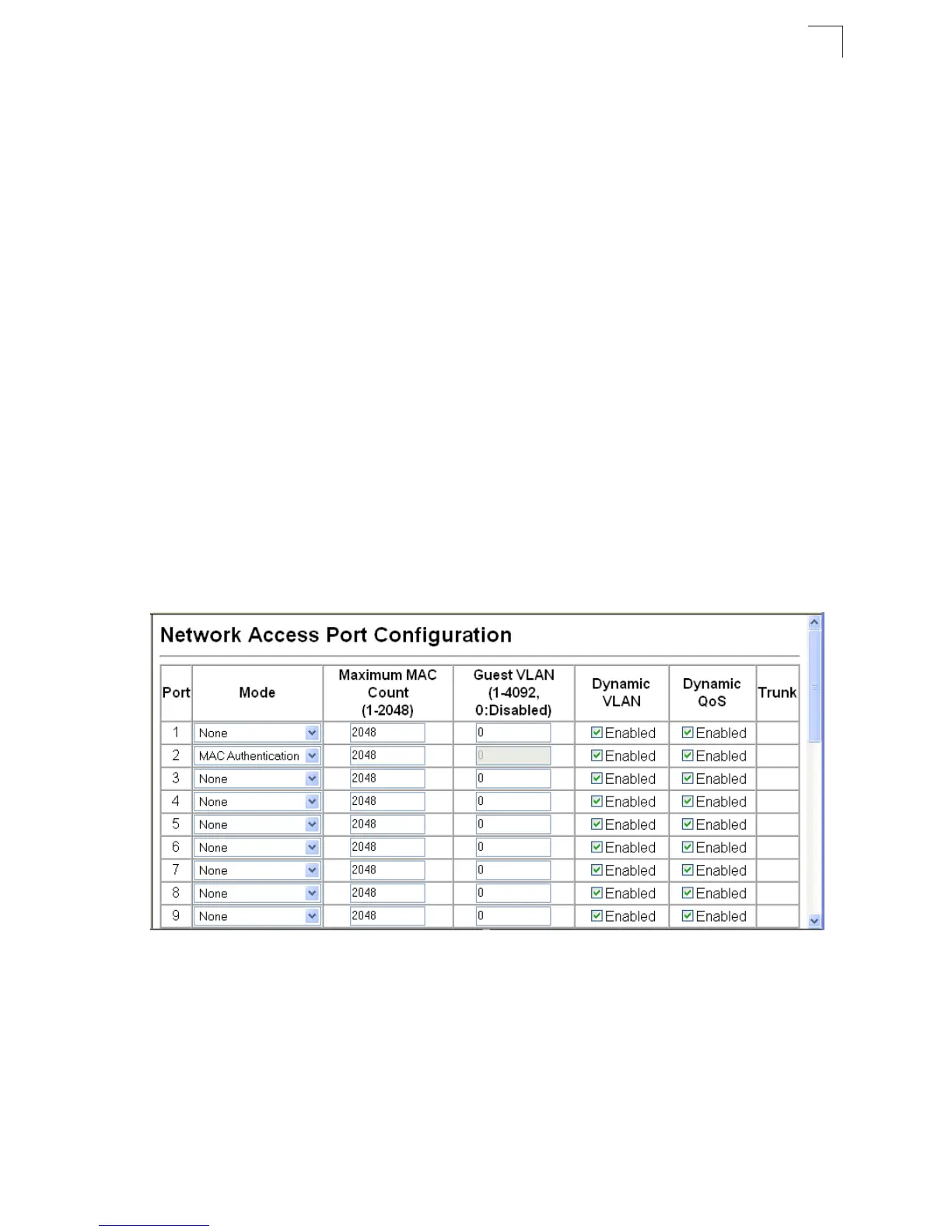 • Guest VLAN – Specifies the VLAN to be assigned to the port when MAC