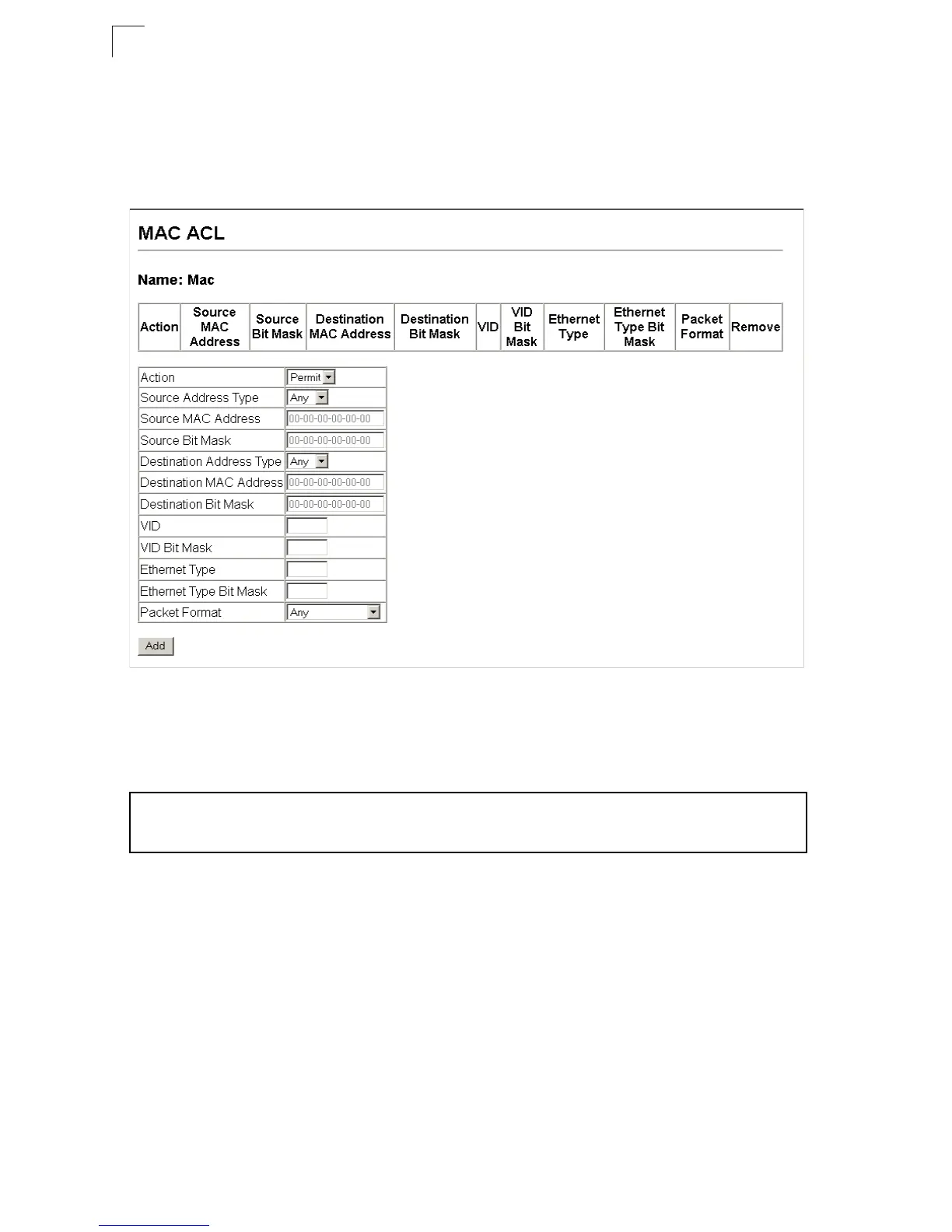 Console(config-mac-acl)#permit host 00-10-b5-e9-52-79 any
