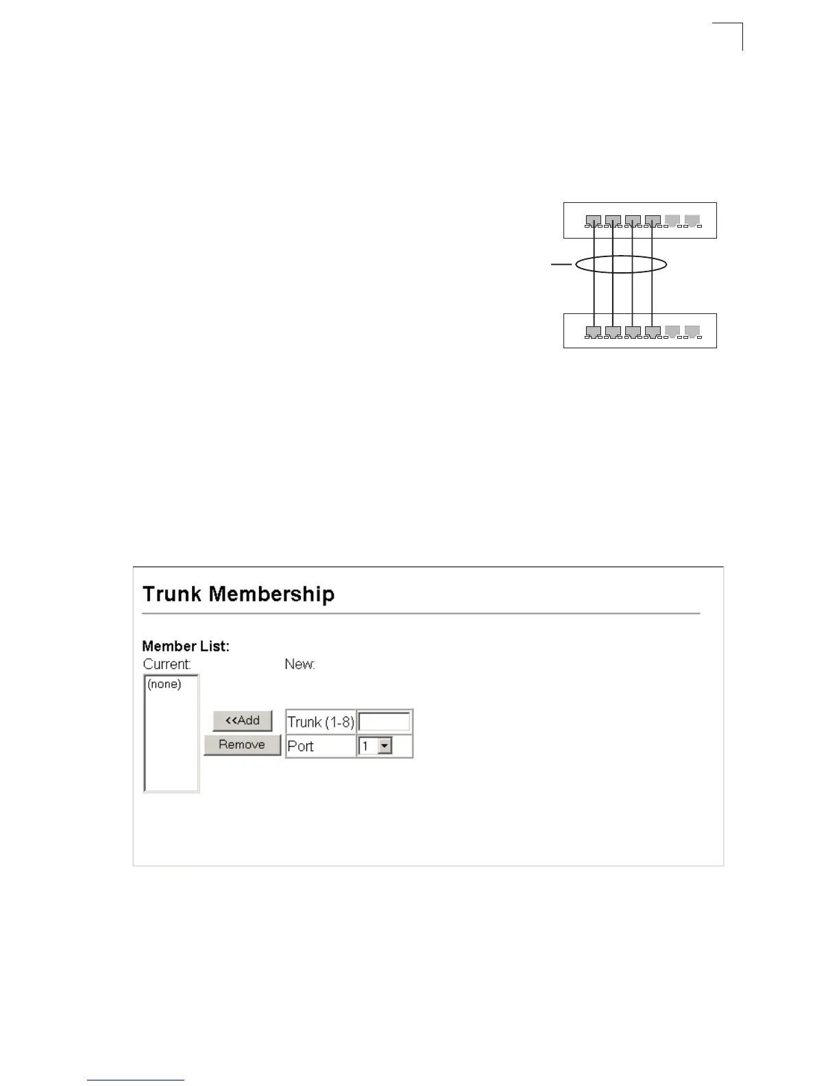 Web – Click Port, Trunk Membership. Enter a trunk ID of 1-8 in the Trunk field,