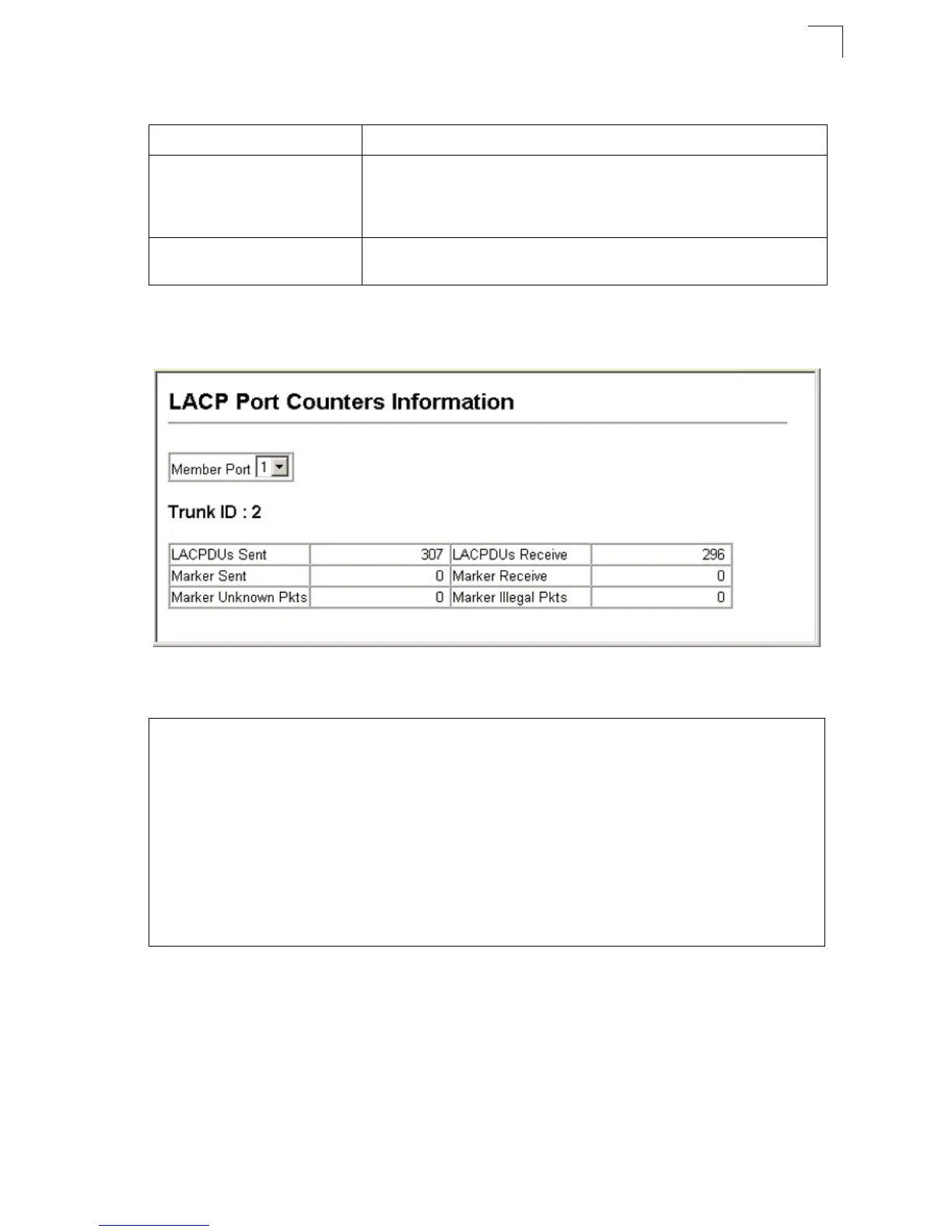 Web – Click Port, LACP, Port Counters Information. Select a member port to display