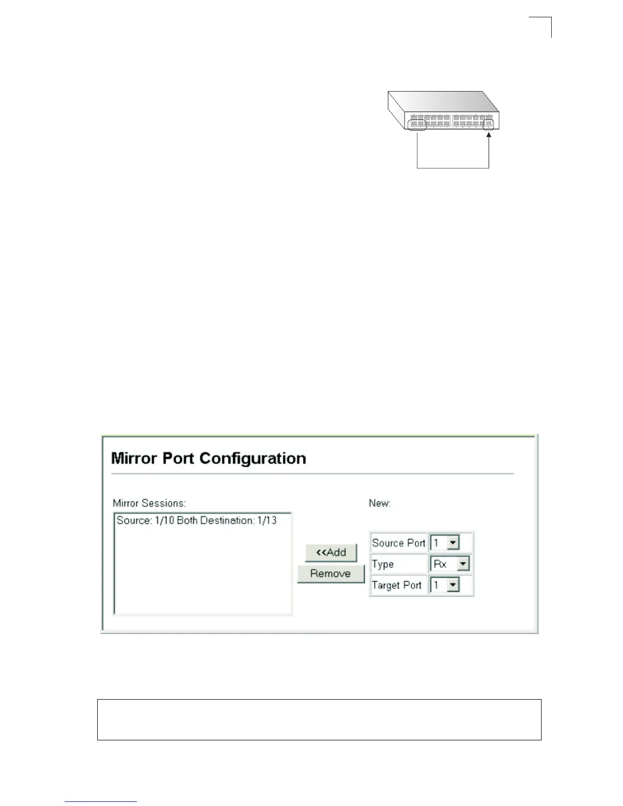• When mirroring port traffic, the target port must be included in the same VLAN as