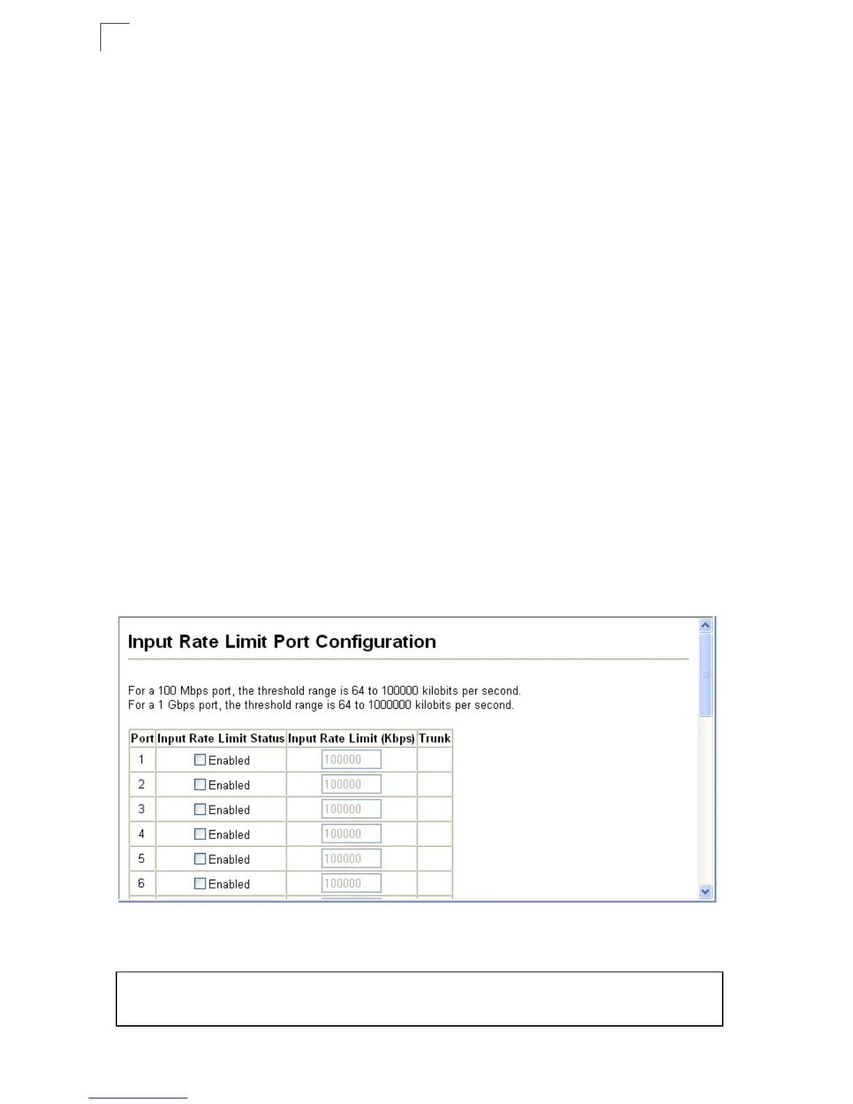 Web – Click Port, Rate Limit, Input/Output Port/Trunk Configuration. Enable the