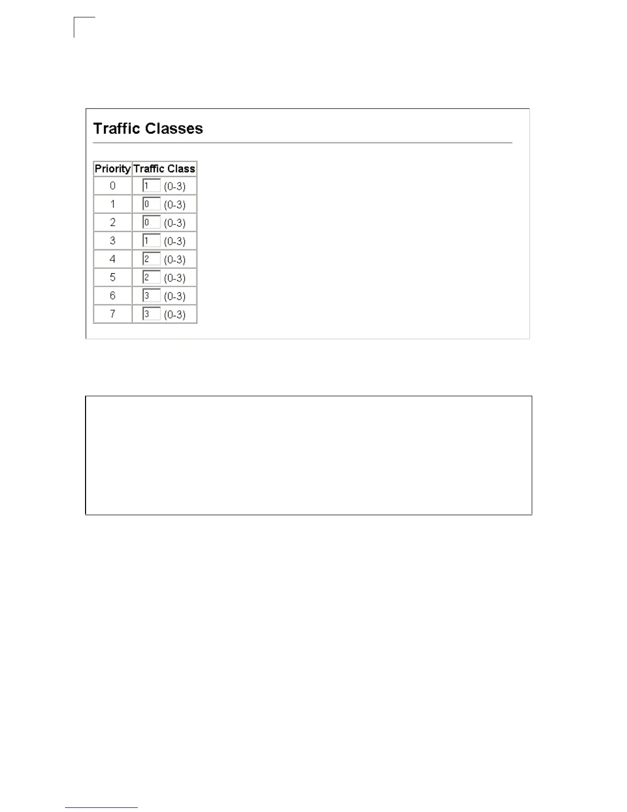 Web – Click Priority, Traffic Classes. The current mapping of CoS values to output