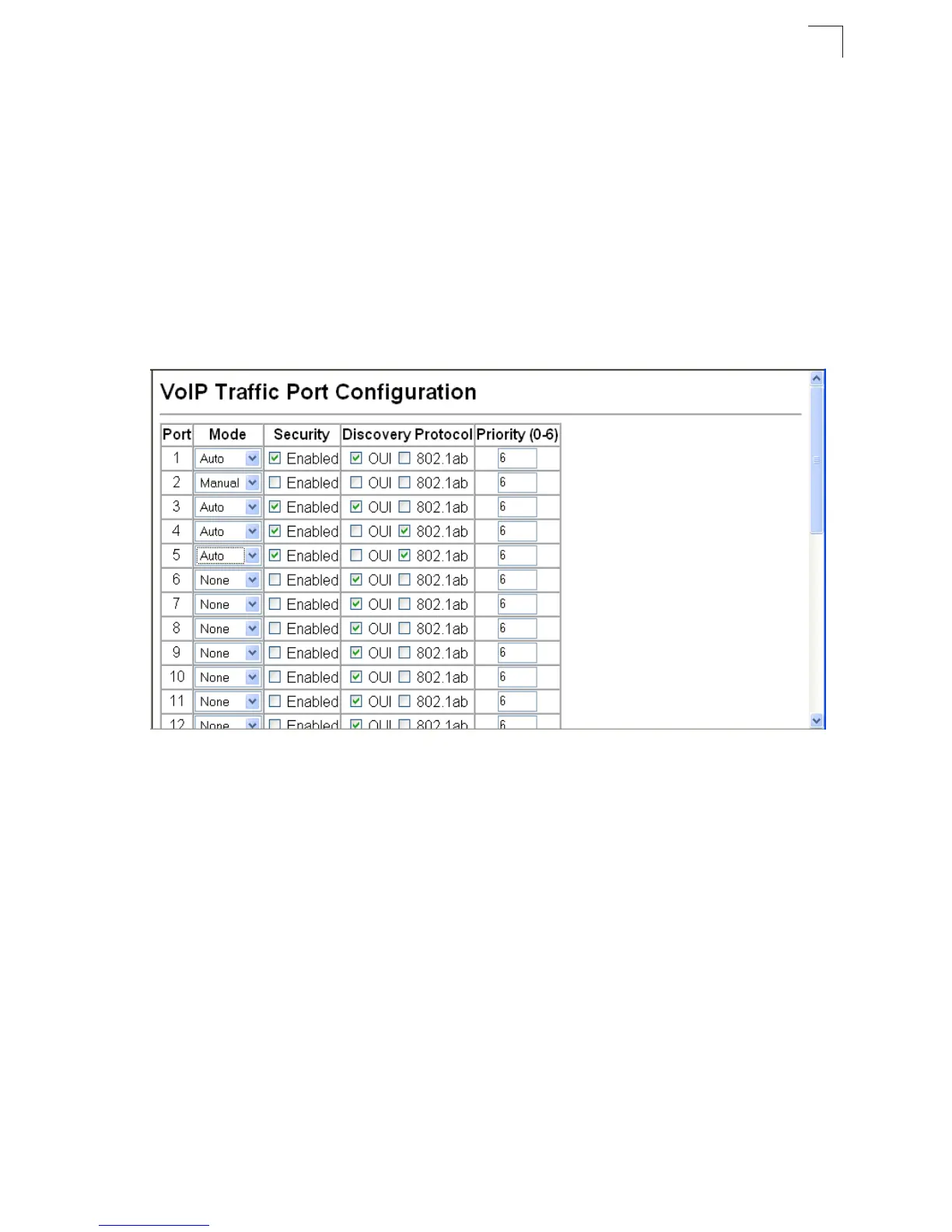 Web – Click QoS, VoIP Traffic Setting, Port Configuration. Set the mode for a VoIP