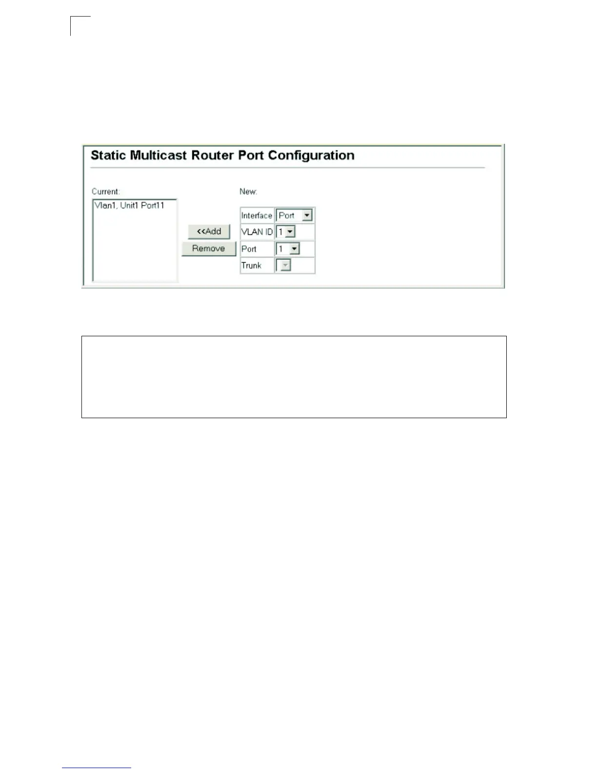 • Port or Trunk – Specifies the interface attached to a multicast router.