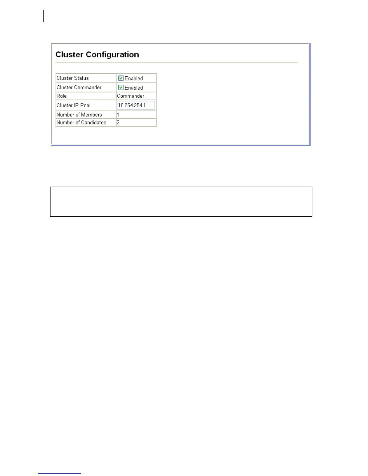 Console(config)#cluster ip-pool 10.2.3.4 4-326