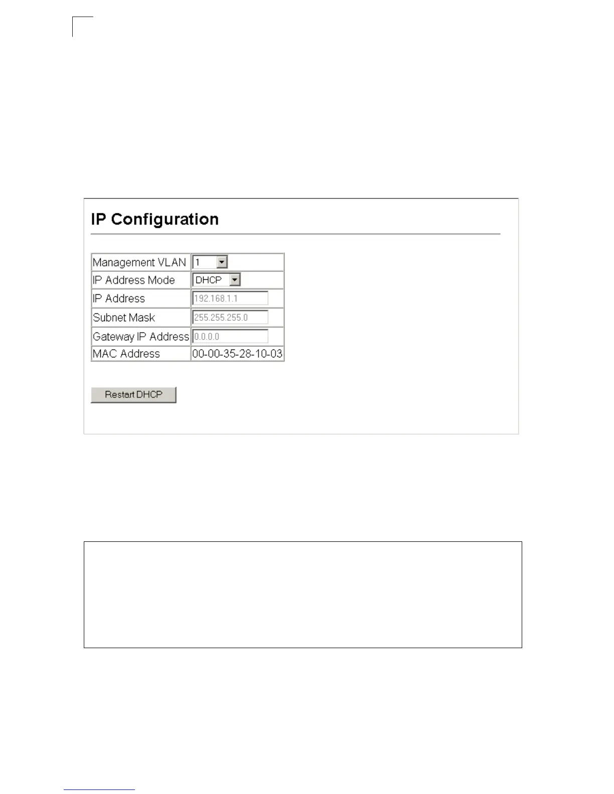 address. Note that the switch will also broadcast a request for IP configuration