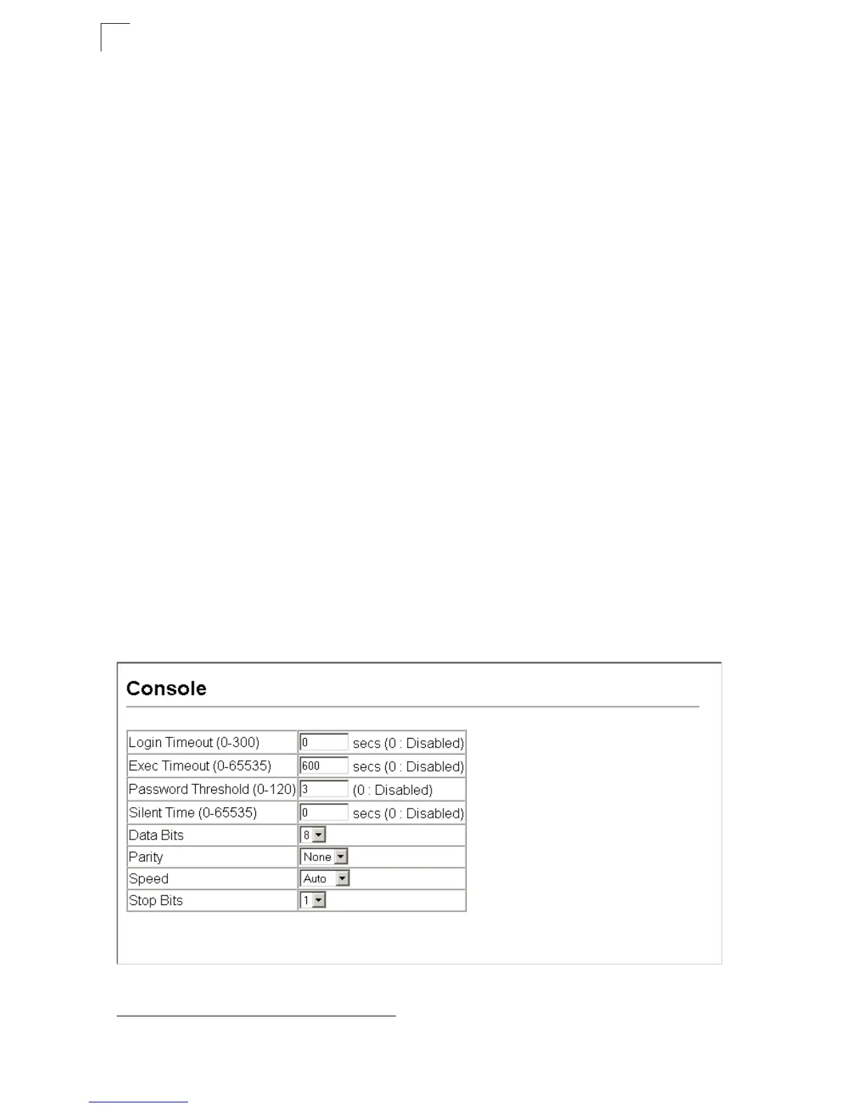 the serial port. (Range: 9600, 19200, 38400 baud, or Auto; Default: Auto)
