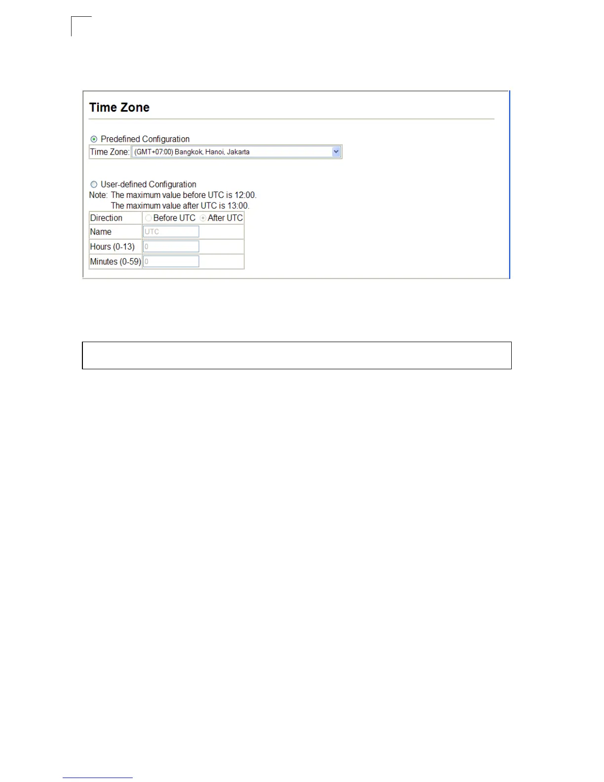 Web – Select SNTP, Clock Time Zone. Set the offset for your time zone relative to