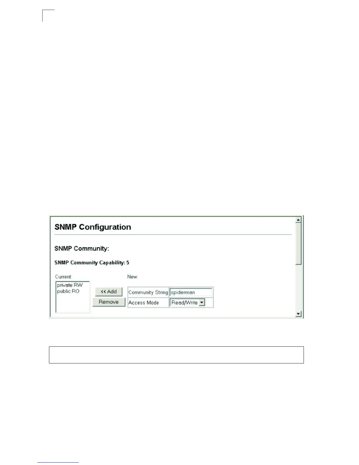 Web – Click SNMP, Configuration. Add new community strings as required, select