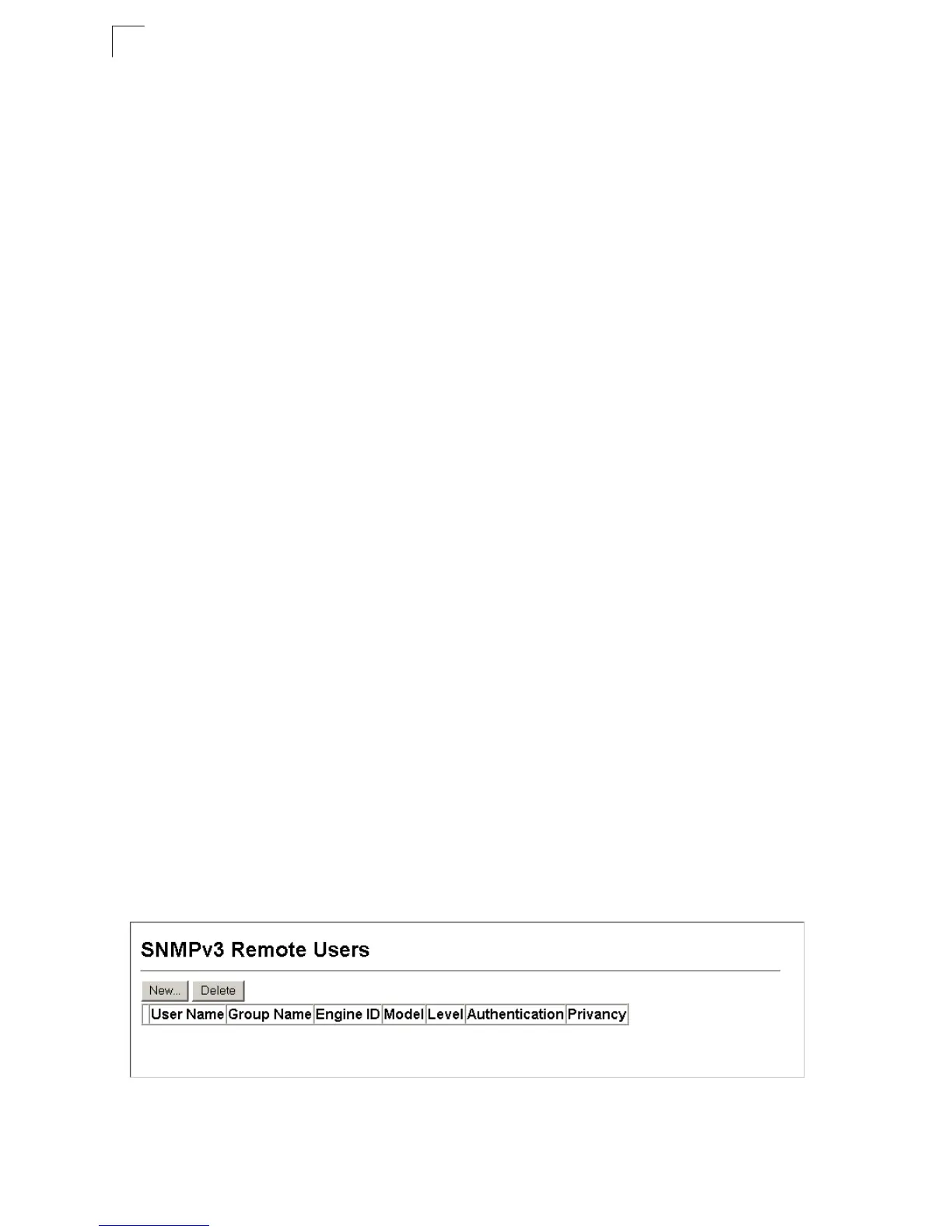 Web – Click SNMP, SNMPv3, Remote Users. Click New to configure a user name.