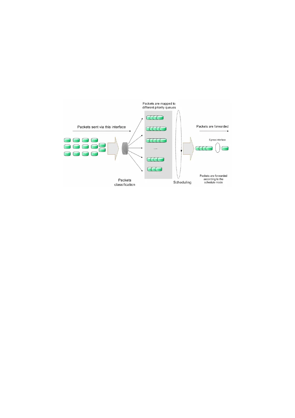 forwards the packets according to specified scheduling algorithms to implement QoS function.