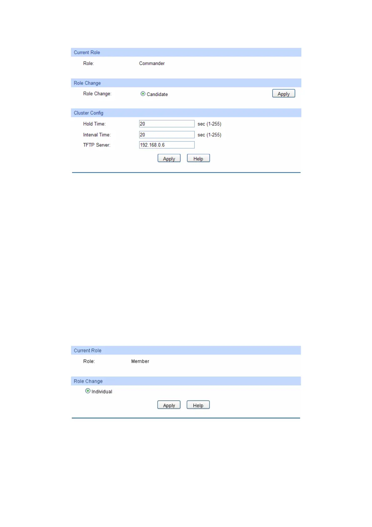 For a member switch, the following page is displayed.