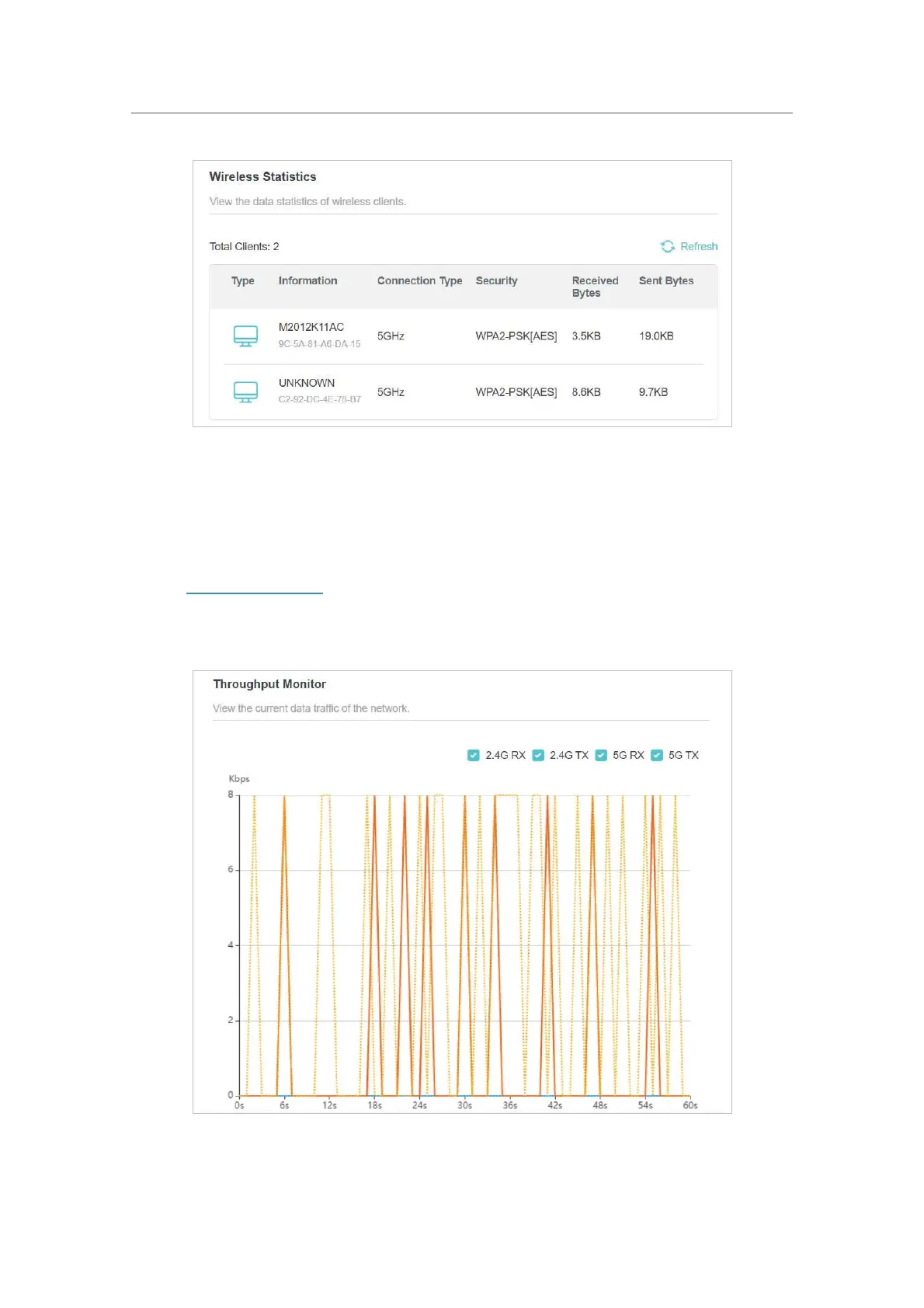 2.4G RX, 2.4G TX, 5G RX and/or 5G TX to view the data rates.