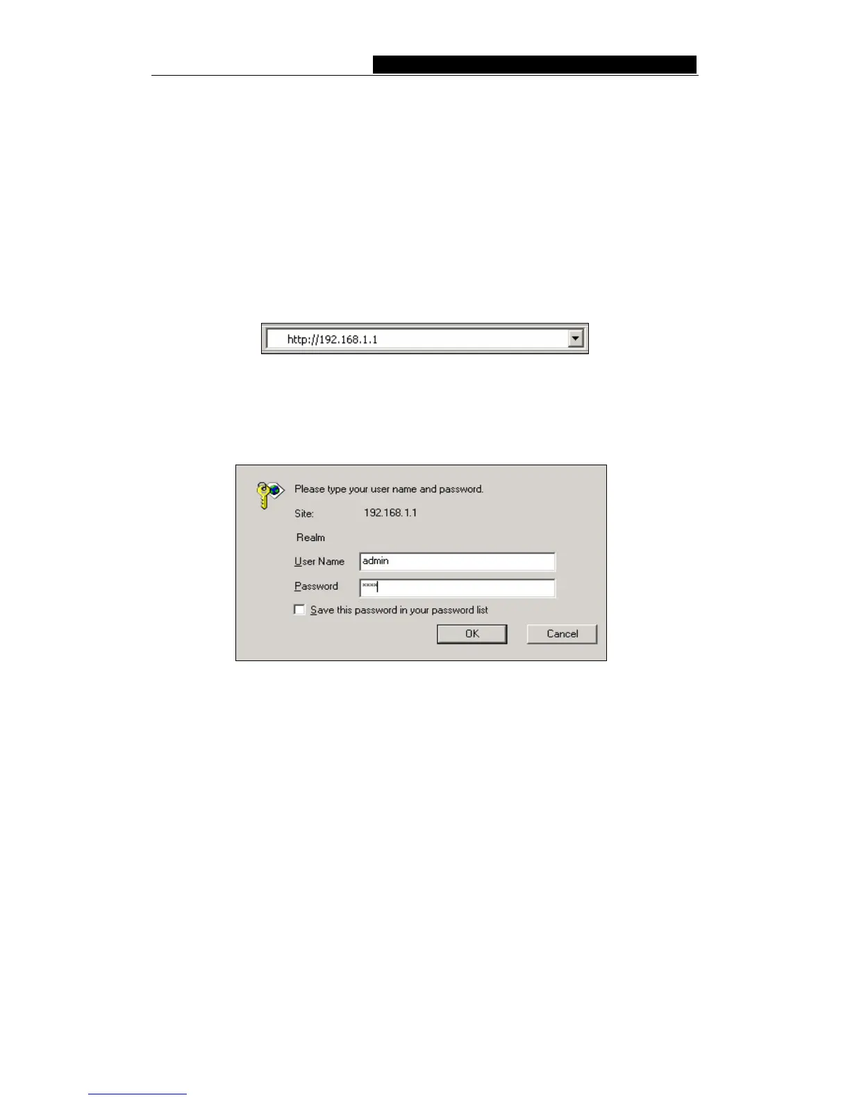 admin for the User Name and Password, both in lower case letters. Then click the OK