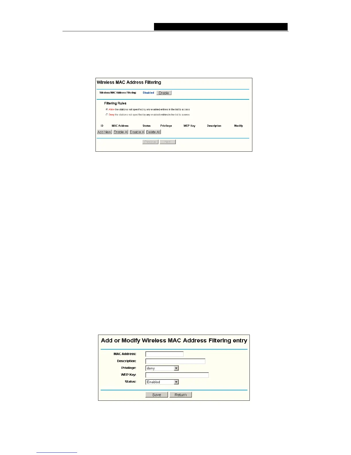 or Modify Wireless MAC Address Filtering entry" page will appear, shown in figure