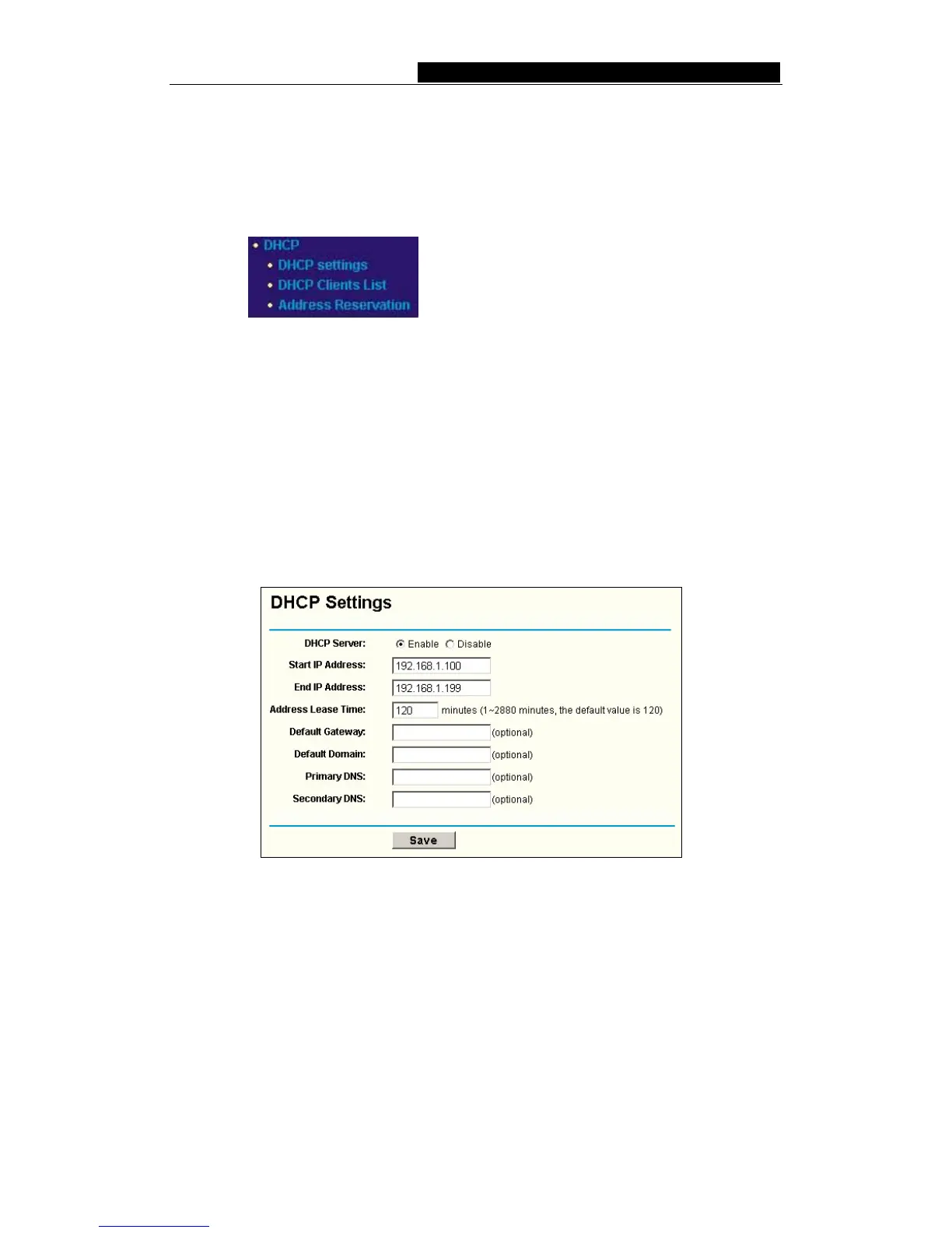 system on the LAN. The DHCP Server can be configured on the page (shown in figure