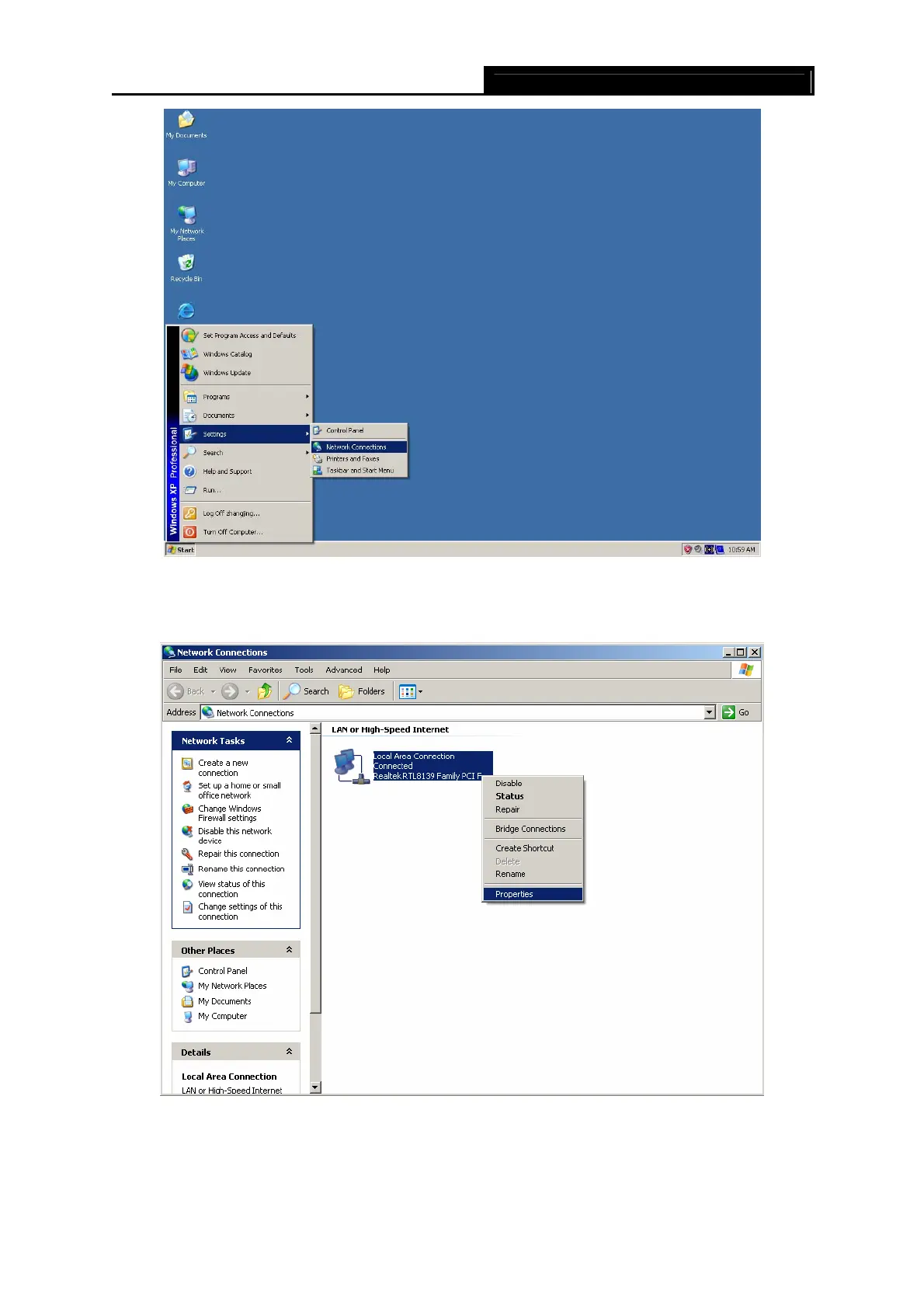 2. In the Network Connections window, right-click on LAN (Local Area Connection), then click