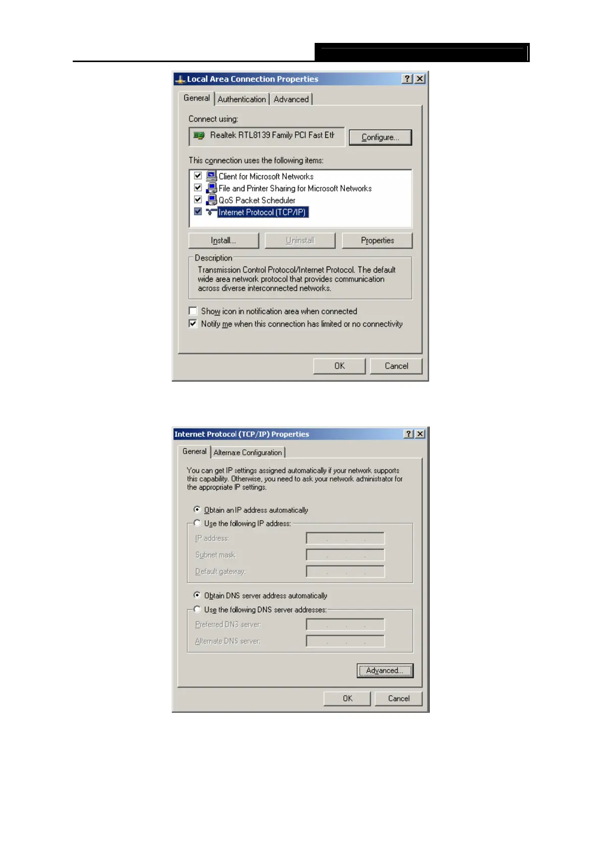 4. Select “Obtain an IP address automatically” by clicking the radio-button. Click OK