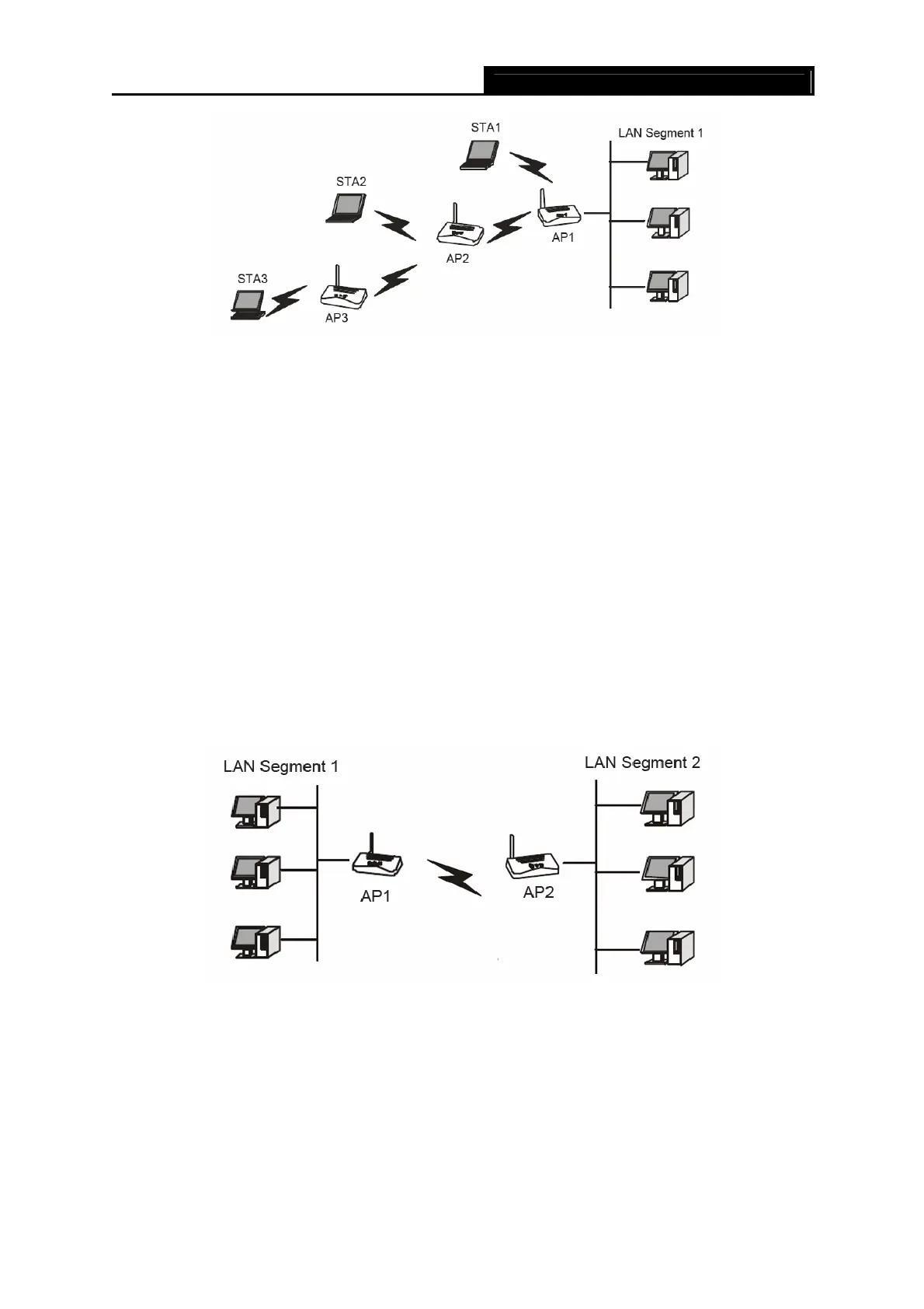 1. Configure the TL-WA601G (AP1) on LAN Segment 1 in Point-to-Point Bridge mode.