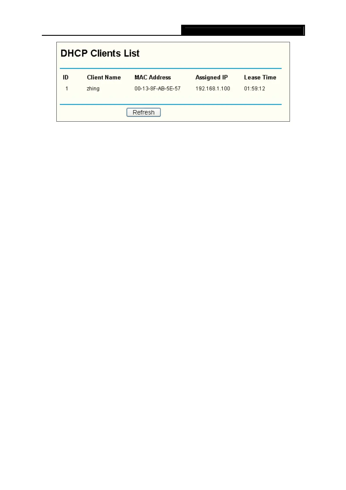 ¾ Lease Time - The time of the DHCP client leased. Before the time is up, DHCP client will