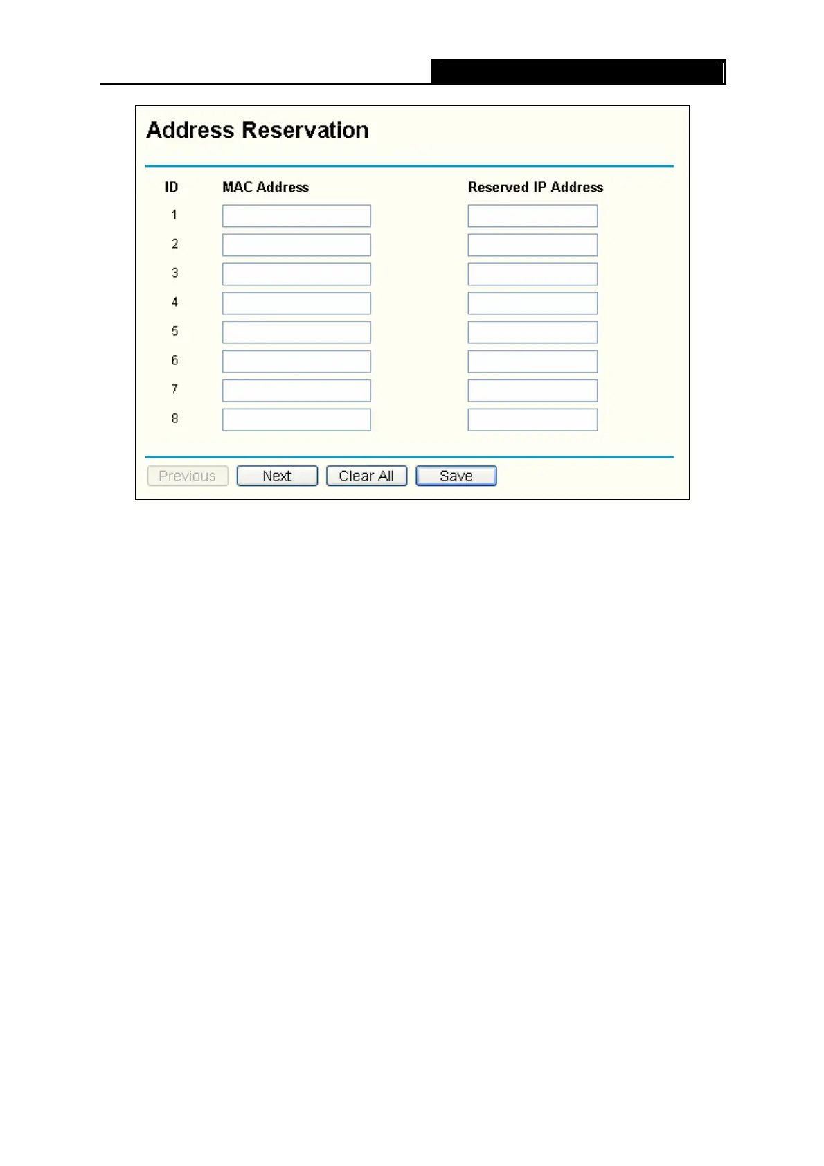 1. Select the reserved address entry as you desire, and modify it. If you wish to delete the entry,