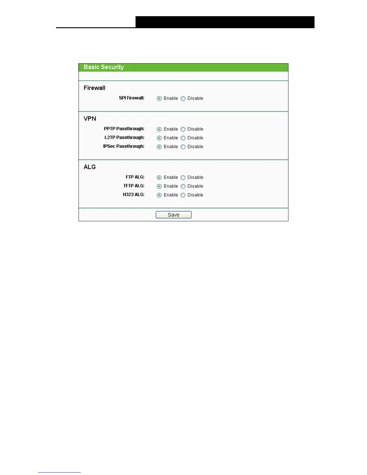 Choose menu Security > Basic Security, and then you can configure the basic security in the