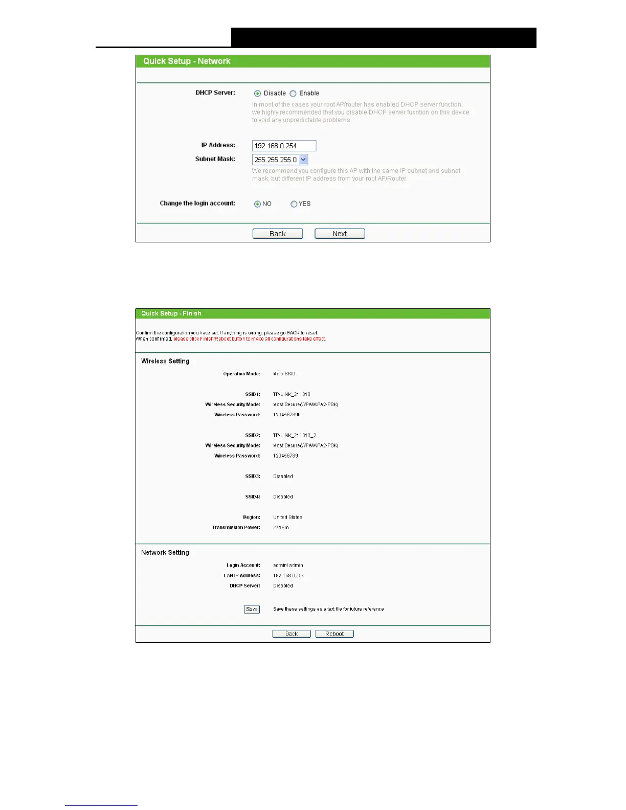 1. Click Next in Figure 3-7, and then Wireless page will appear as shown in Figure 3-28. Click