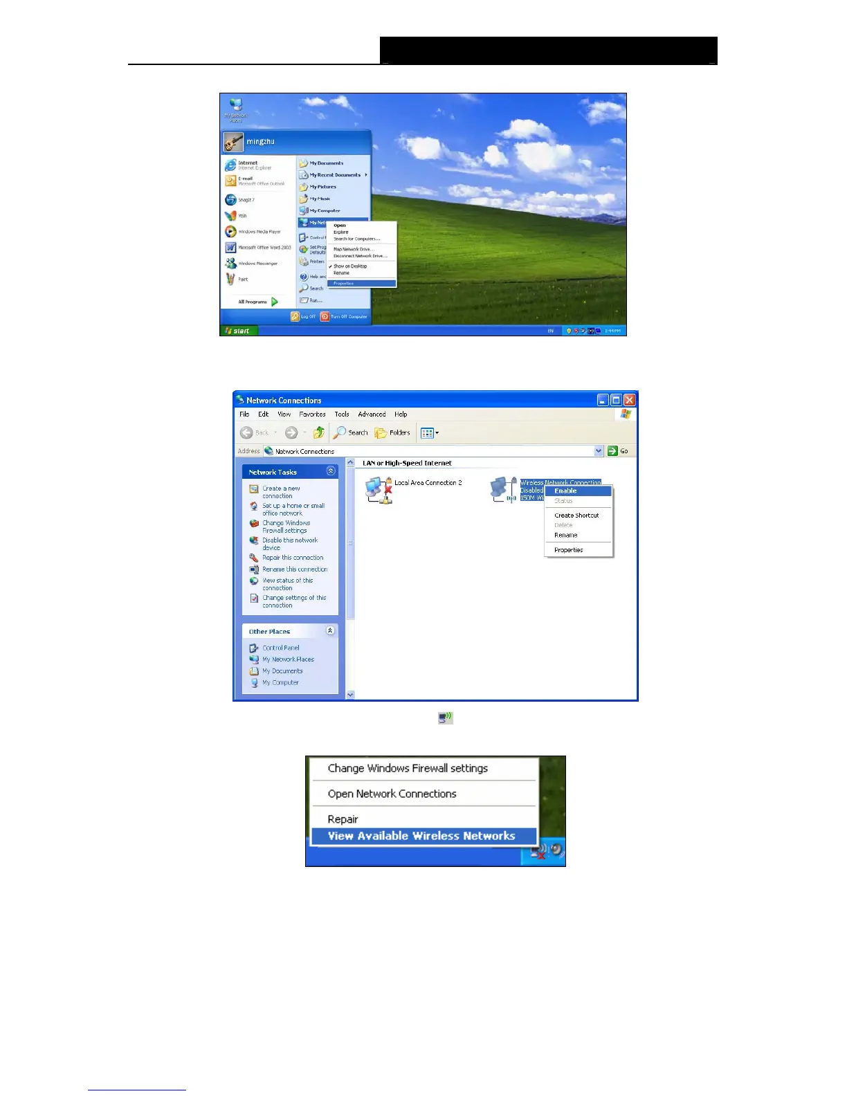 2) On the My Network Connections window, right-click Wireless Network and choose