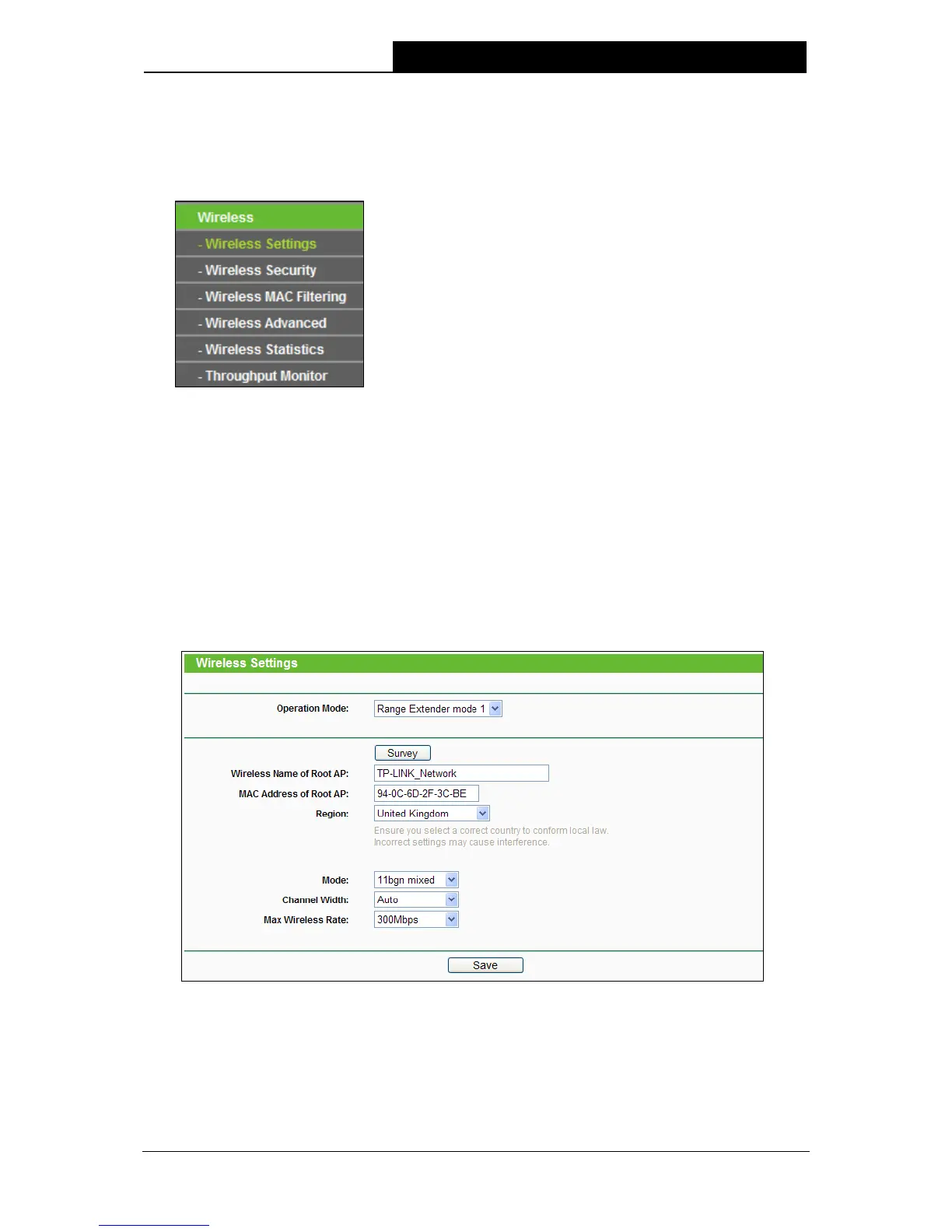 There are six submenus under the Wireless menu (shown in Figure 4-16): Wireless Settings,
