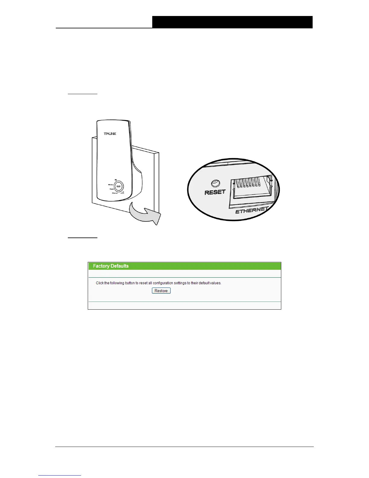 1) Restore the Range Extender’s configuration to its factory default settings. If you don’t