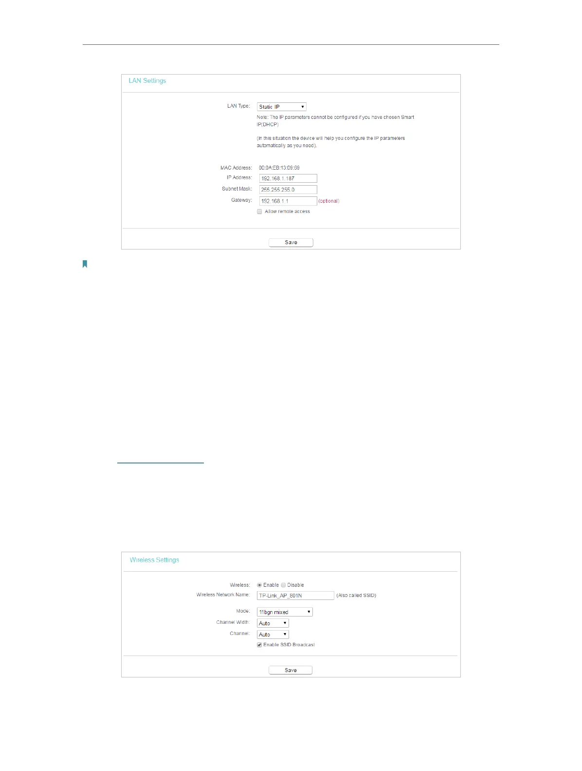 • If you select Smart IP (DHCP), the DHCP server settings of the access point will be disabled.
