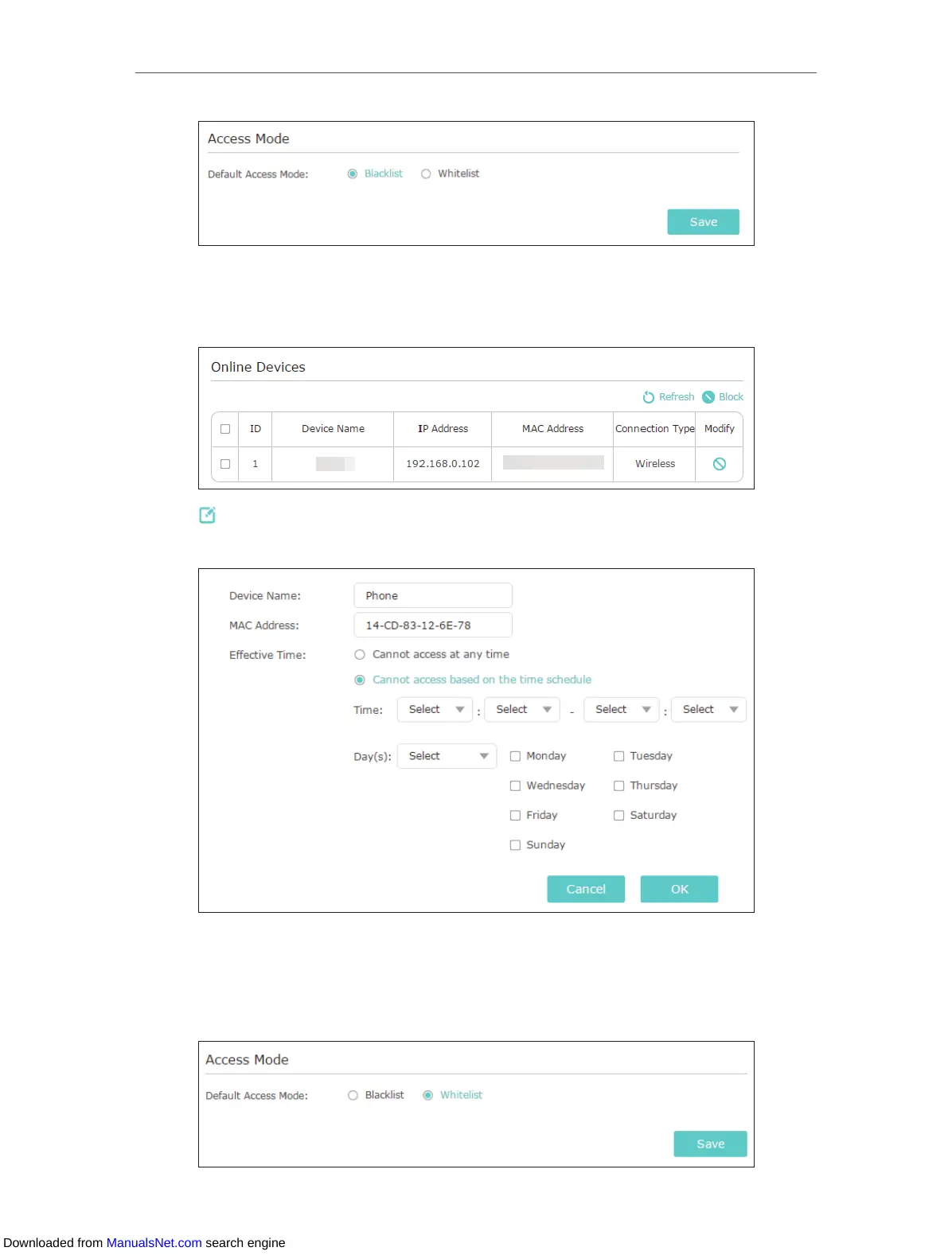 3. Click Block and the selected device(s) will be added to the Devices in Blacklist table.
