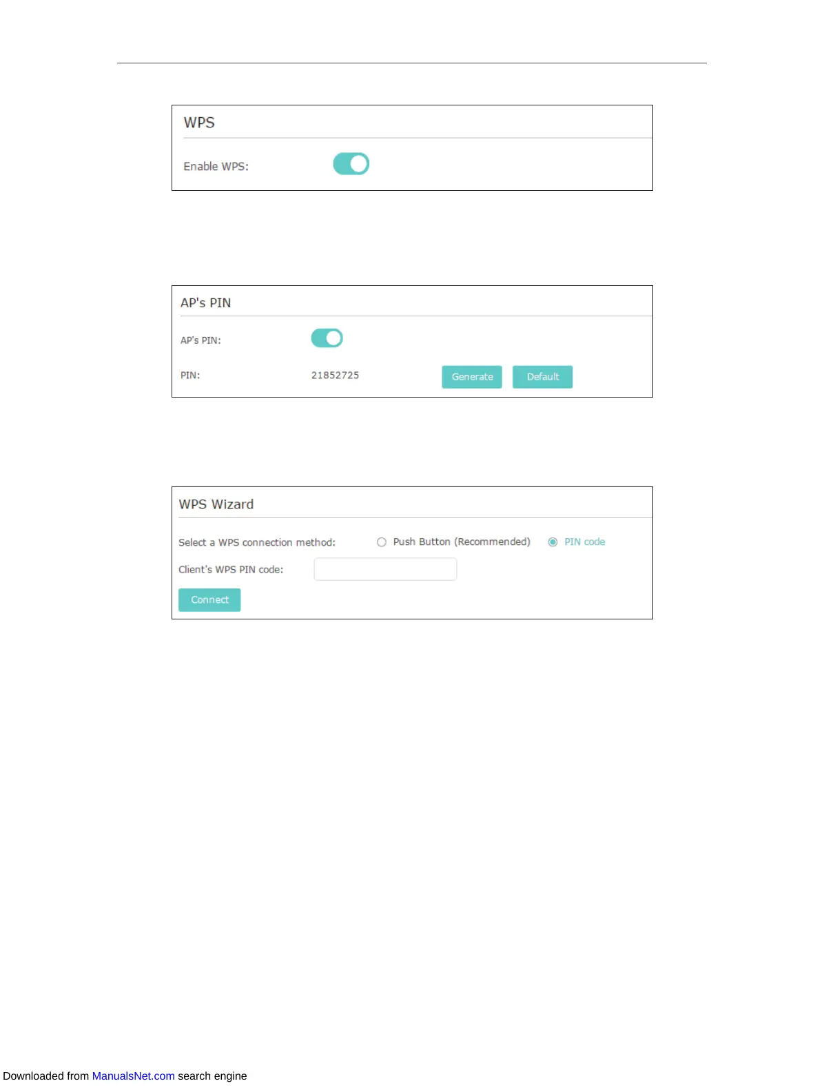 • AP’s PIN: Enable AP’s PIN and enter the PIN on your device. You can click Generate