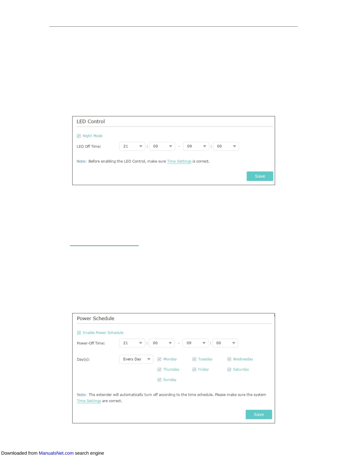 2. Specify a time period in the LED Off Time field, and the LEDs will be off during this
