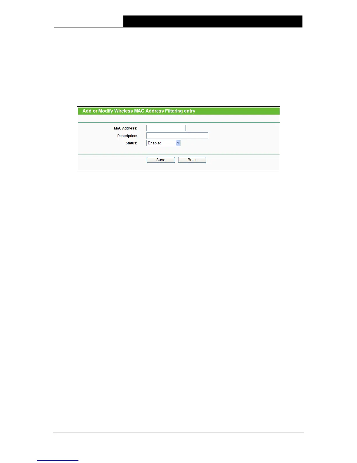 Wireless MAC Address Filtering entry" page will appear, shown in Figure 4-16.