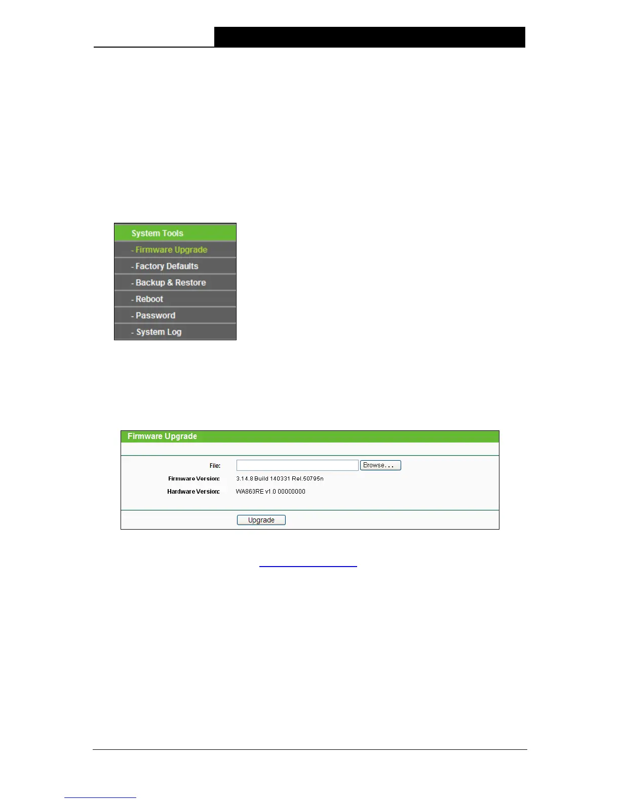 Selecting System Tools > Firmware Upgrade allows you to upgrade the latest version of