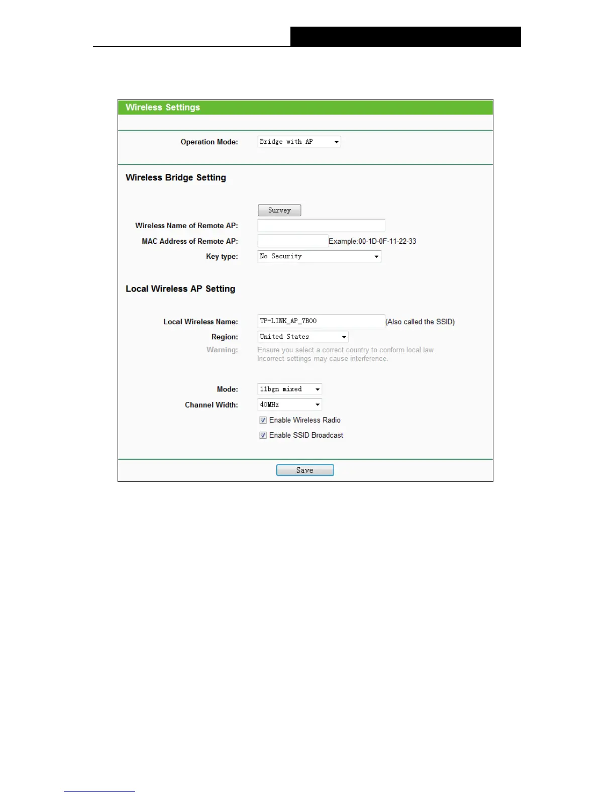 Figure 4-17 Wireless Settings in Bridge with AP mode