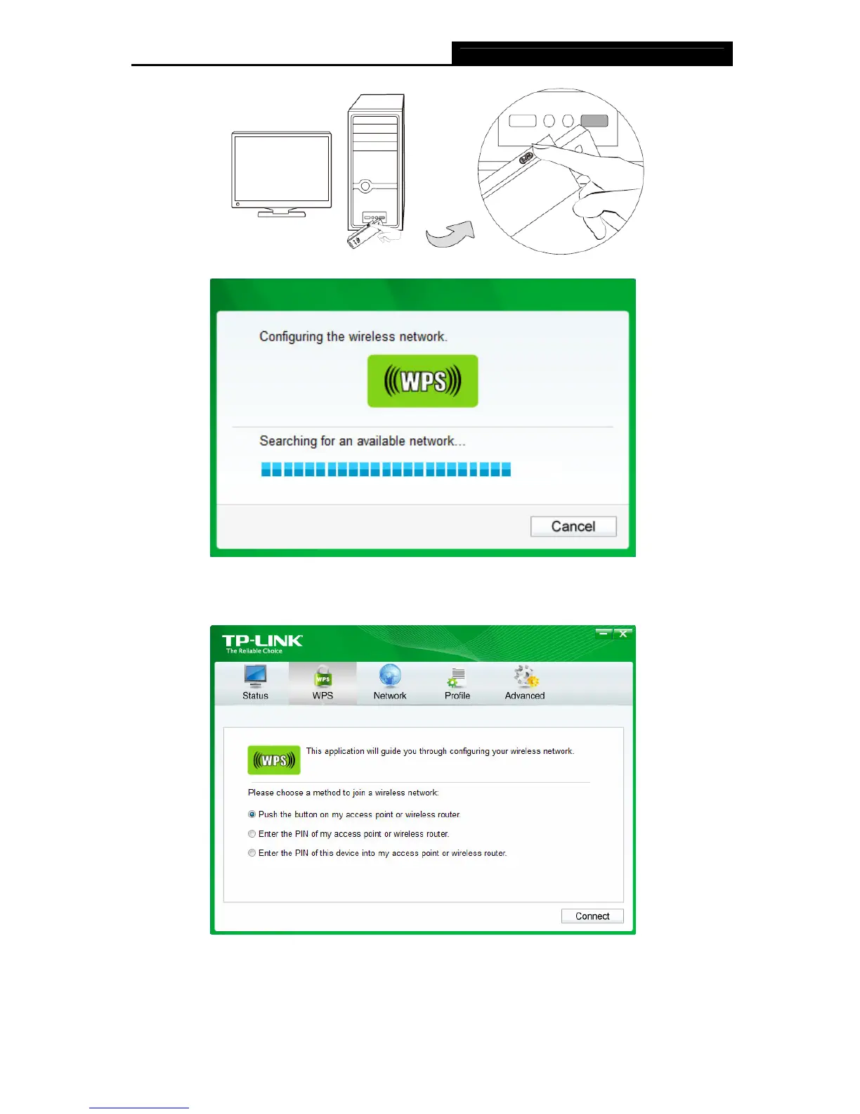 2) Open TWCU and click WPS tab. Select Push the button on my access point or