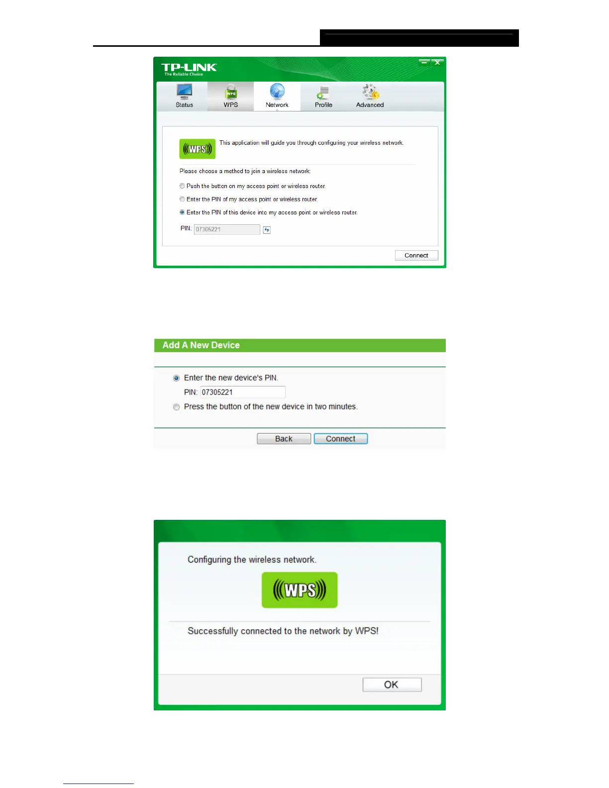 3. When Connect successfully appears on the screen, the WPS configuration is complete.
