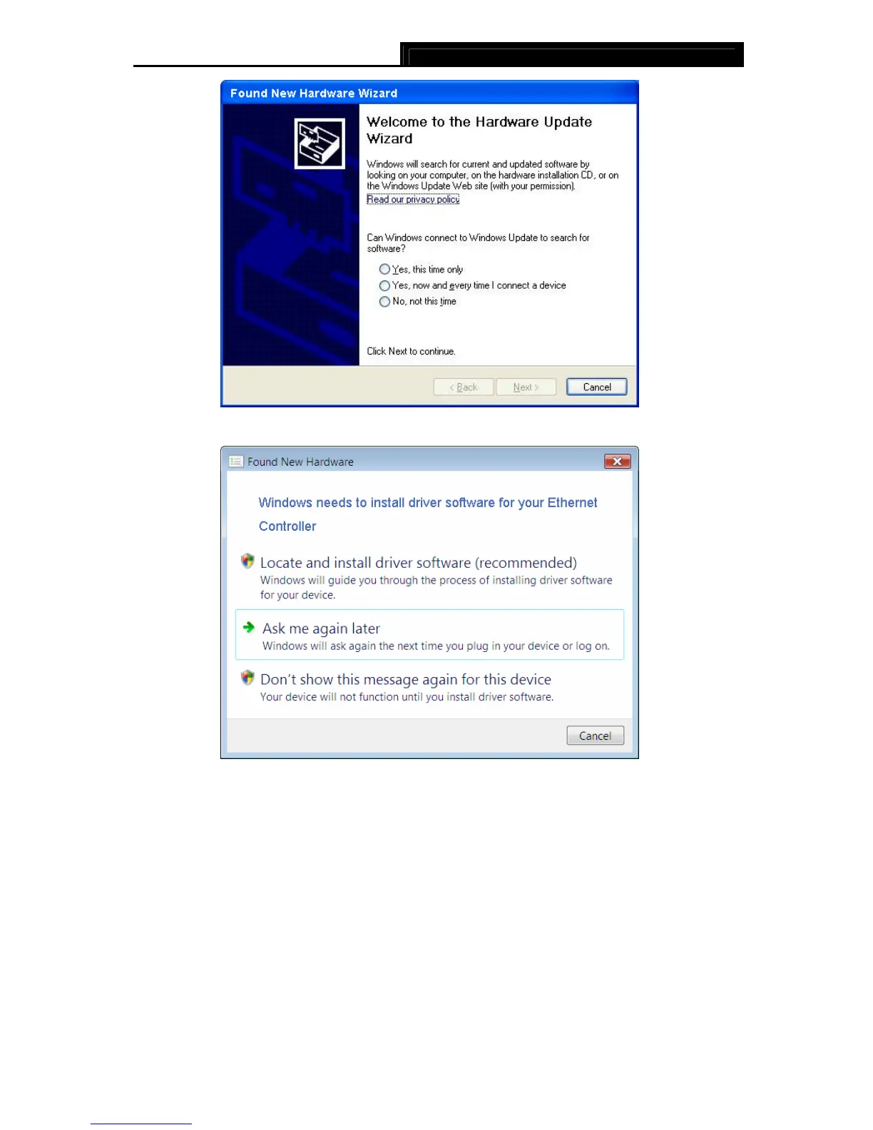 Figure 2-1 Found New Hardware Wizard in Windows XP