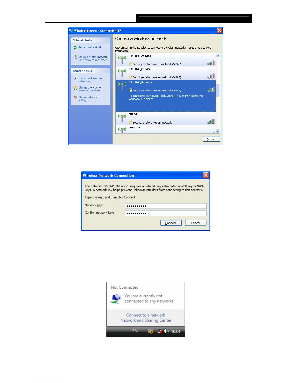 4. If the network is security-enabled, you will be prompted to enter the key as shown below. If