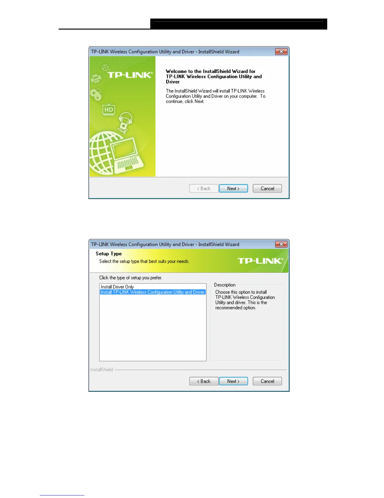 3. Choose a setup type. It is recommended to select Install TP-LINK Wireless