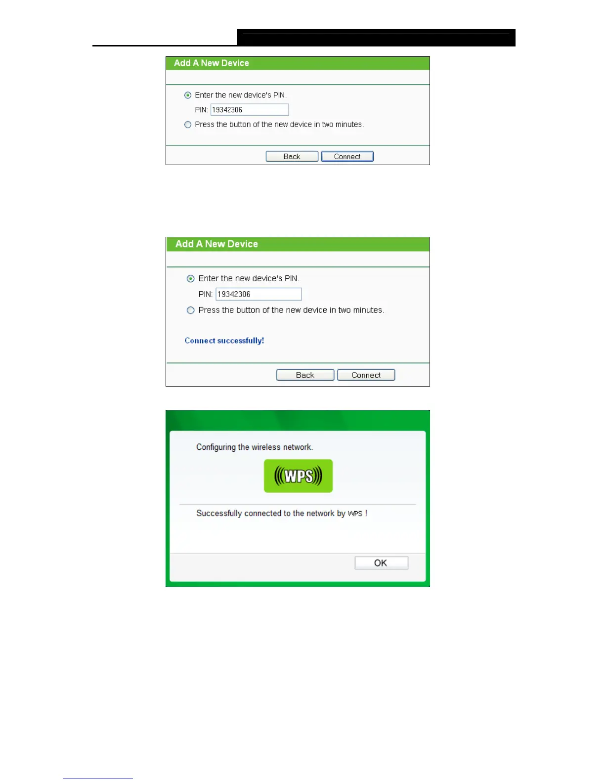 3. When Connect successfully appears on the screen (as shown in Figure 3-16), the WPS