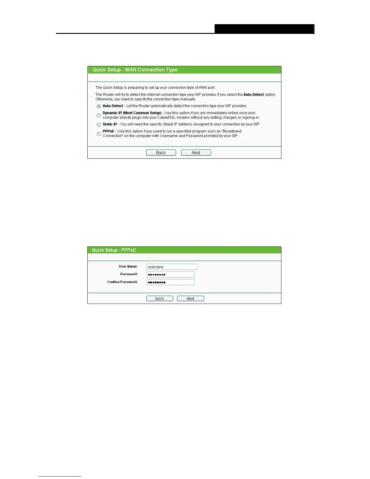 1) If the connection type detected is PPPoE, the next screen will appear as shown in Figure