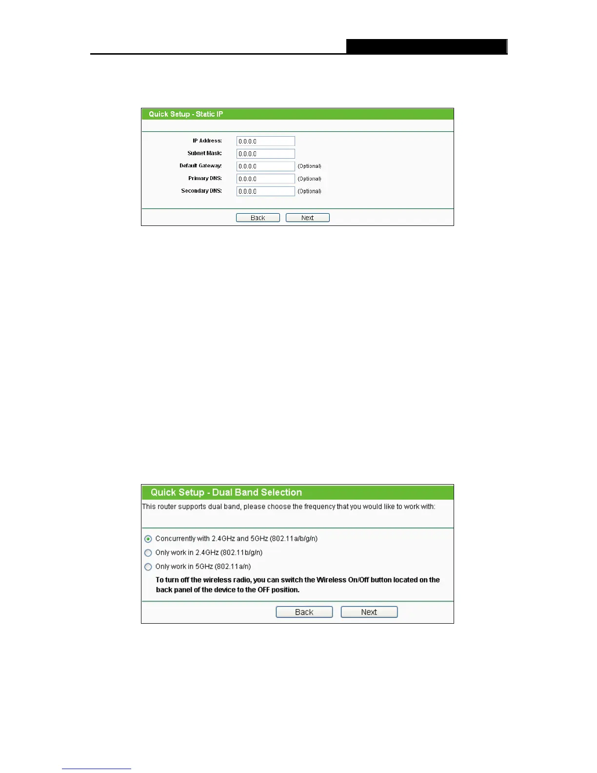 Figure 3-11 Quick Setup – Dual Band Selection