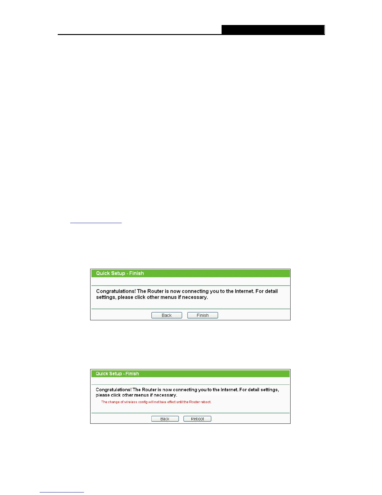 If you don’t make any change on the Wireless page, you will see the Finish page as