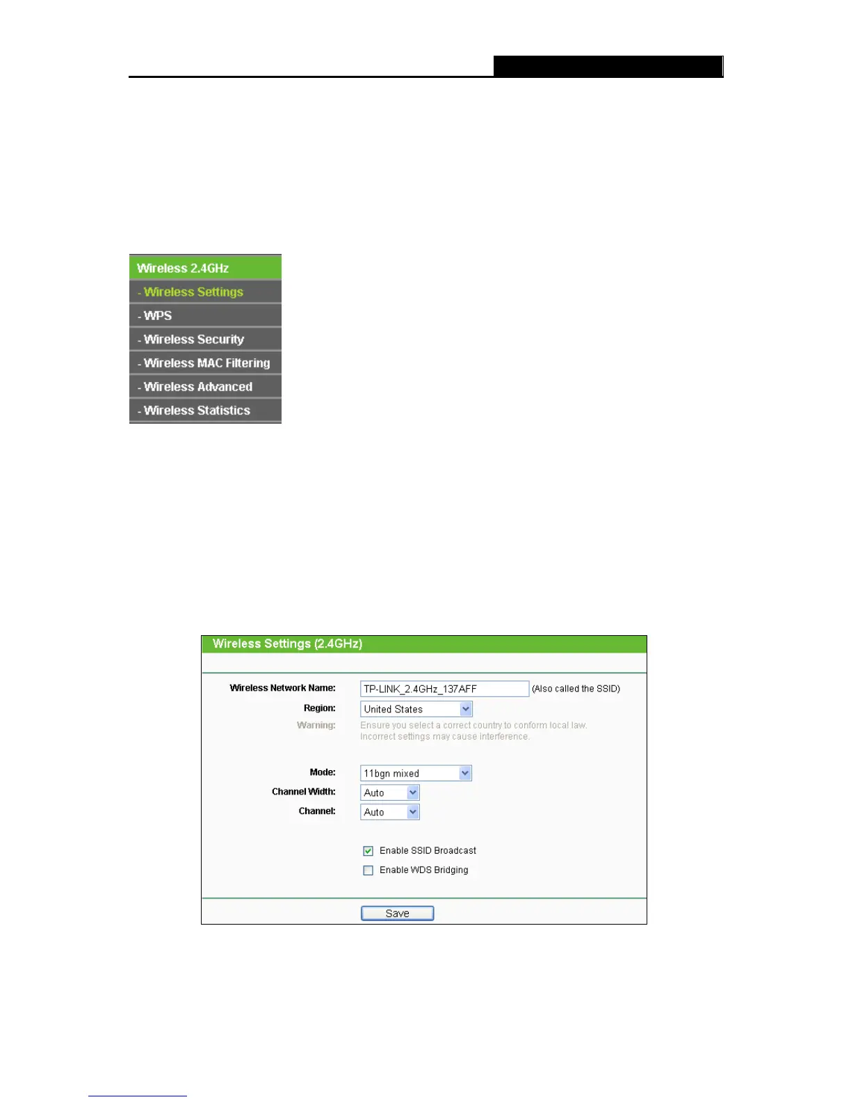 Figure 4-14 Wireless Settings – 2.4GHz