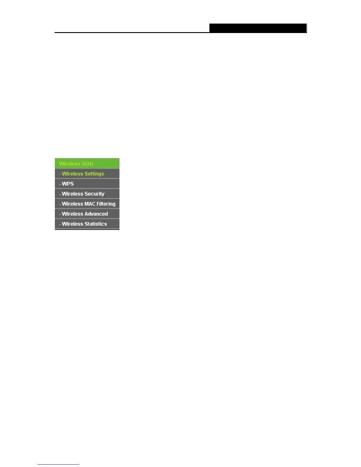 There are five submenus under the Wireless menu (shown in Figure 4-13): Wireless Settings,